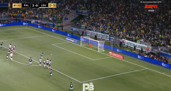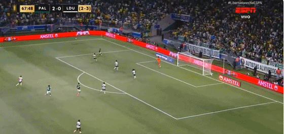 上半场补时第5分钟,富克斯禁区内二点球直接打门,帕尔梅拉斯2-0基多大学↓