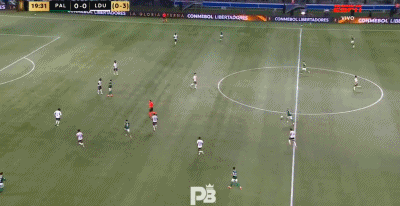 第20分钟,索萨在禁区内头球破门,帕尔梅拉斯1-0基多大学↓