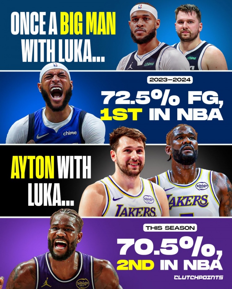 2023-24赛季,加福德命中率72.5%,联盟第一;本赛季至今艾顿命中率70.5%,联盟第二。