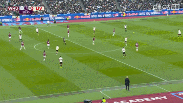 直播吧11月30日讯 英超第13轮,西汉姆联vs利物浦,比赛第38分钟,加克波做球,维尔茨推射过正被阿雷奥拉抱住。