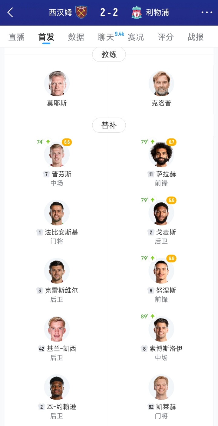 利物浦本场替补:25-马马尔达什维利、26-罗伯逊、3-远藤航、17-琼斯、42-尼奥尼、14-基耶萨、22-埃基蒂克、73-恩古莫哈、11-萨拉赫