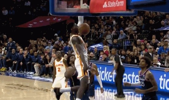 神兵天降!基顿·华莱士三分不中 盖耶走位冲进去单臂补扣!