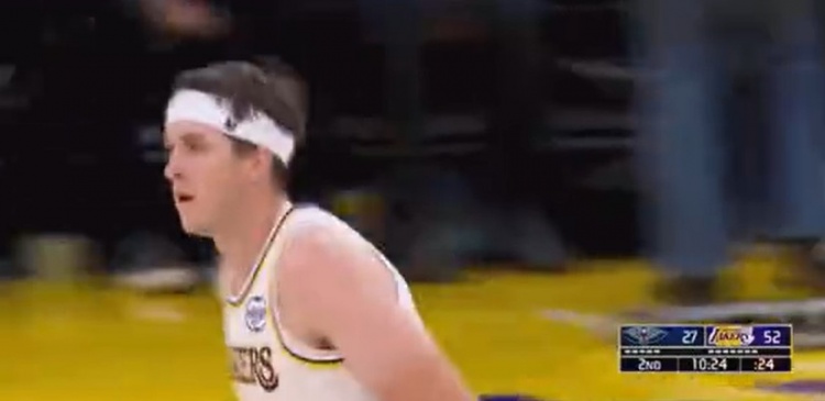 又强又幸运!里夫斯命中超远三分 之后借掩护强投三分弹进