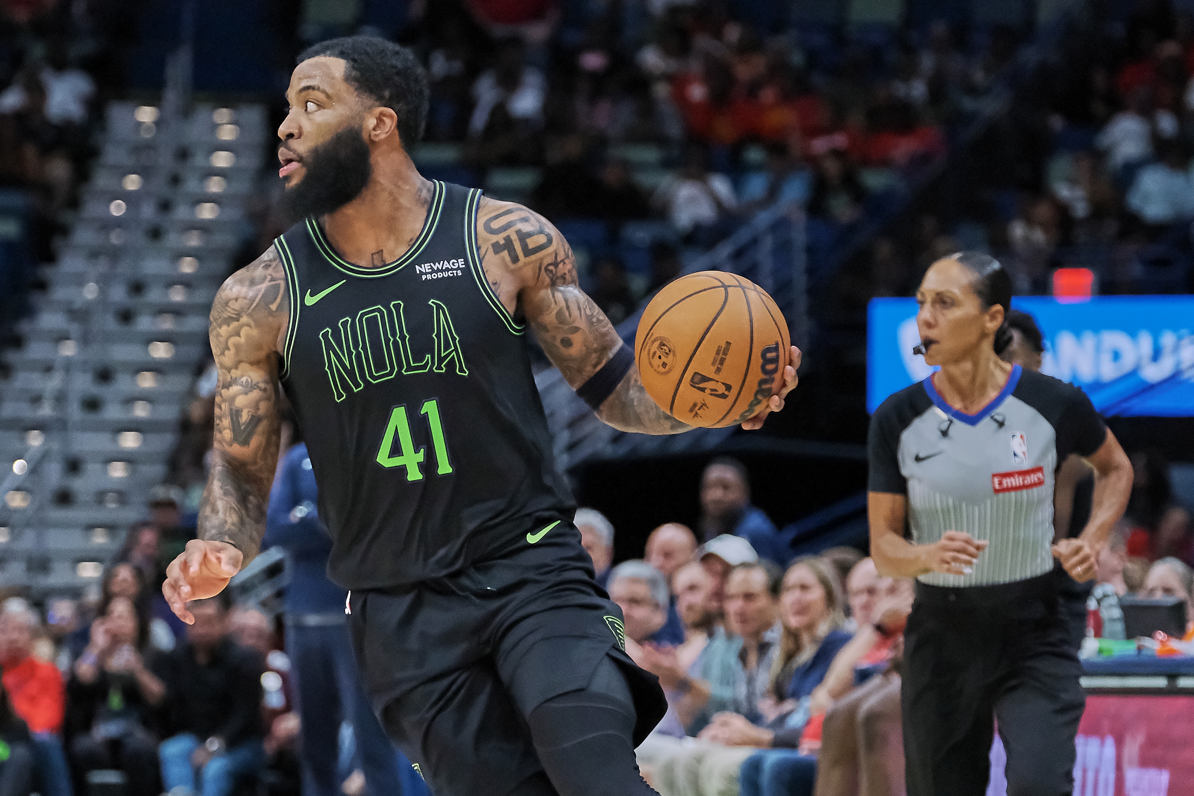 上半场,鹈鹕球员萨迪克·贝表现不错,进攻高效篮板也很积极,在18分钟的时间里,投篮6中4,三分球2中2,罚球2中1,拿到11分7篮板1助攻的数据。