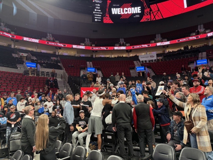 小吧直击|波特兰球迷赛后排起长龙等签名 SGA真是来者不拒