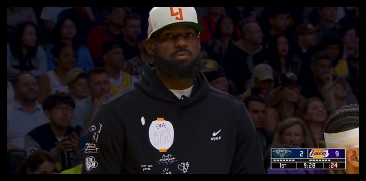 因伤病管理缺战鹈鹕!詹姆斯在场边观战