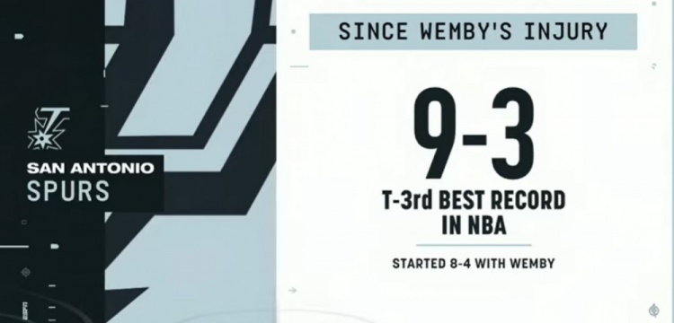 体现阵容深度!马刺在文班缺战后战绩9胜3负 期间联盟第三佳!