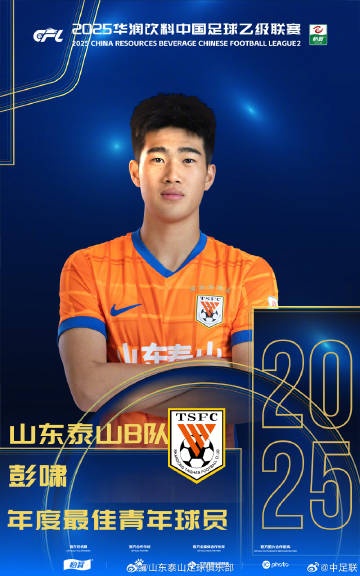 恭喜彭啸当选中乙年度最佳青年球员!愿他在足球道路上稳步前行!