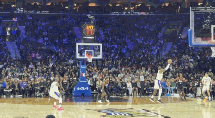 此役湖人球星詹姆斯发挥出色,身体状态回暖在场上看起来活力满满。更是在末节关键时刻连续命中远投接管比赛,他第四节单节6中5拿下了12分,更是直接看穿对手最后一攻完成抢断终结比赛悬念。