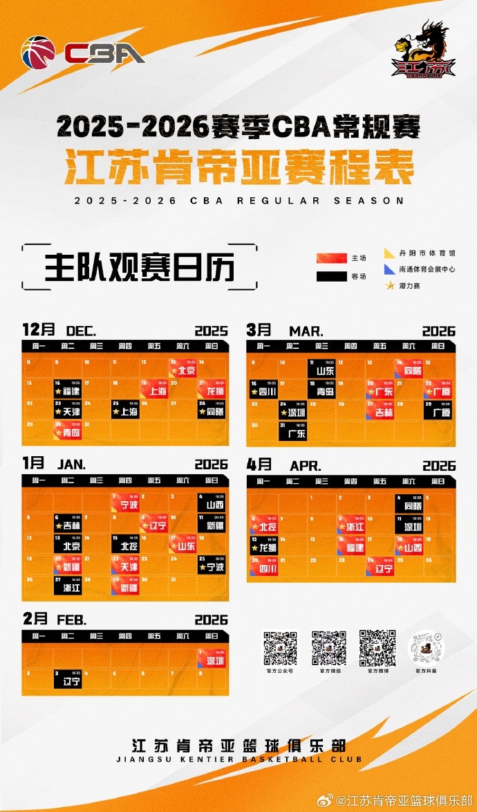 潜力赛来袭!江苏男篮19场青春试炼完整赛程解锁!