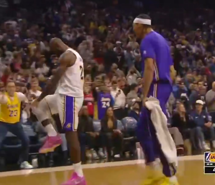 你干嘛?詹姆斯豪迈庆祝再踩霸王步 没踩完被海斯偷袭中断!