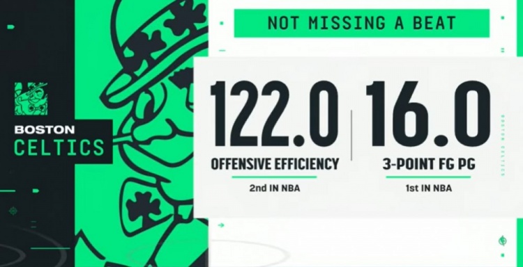 底蕴!单探花绿军本季场均16记三分联盟第一 进攻效率122联盟第二