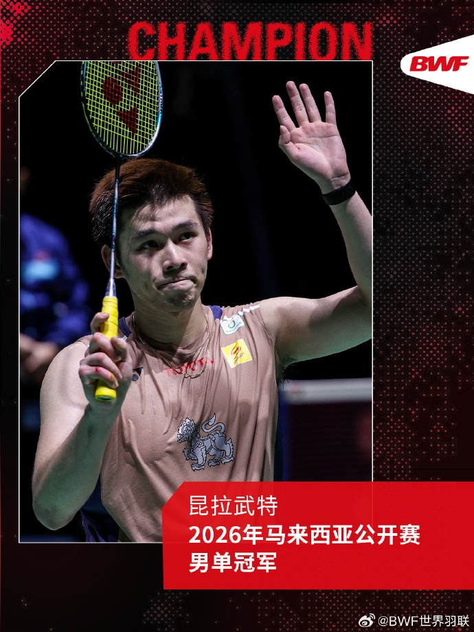 直播吧01月11日讯 2026年马来西亚羽毛球公开赛男单决赛,中国选手石宇奇对阵泰国选手昆拉武特。石宇奇在第二局退赛,昆拉武特获得冠军。