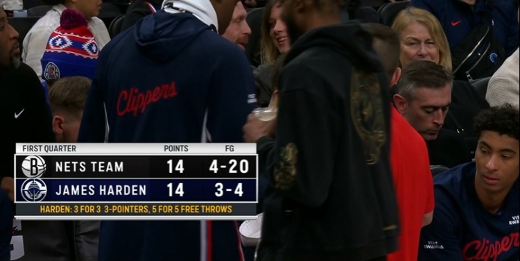 一人打一队!哈登首节三分3中3拿到14分 篮网全队20中4也拿14分