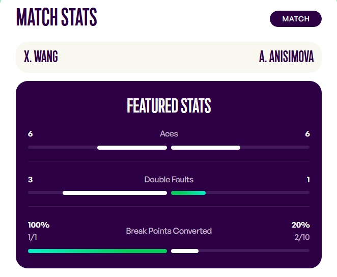 尽力了!王欣瑜本场6记ACE,第一盘抢七&第二盘医疗暂停回更衣室