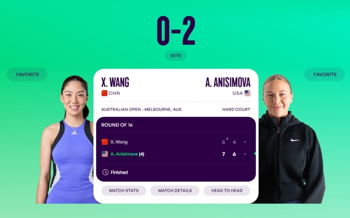 直播吧01月26日讯 2026年澳网女单1/8决赛,王欣瑜0-2不敌4号种子阿尼西莫娃,止步澳网女单16强。