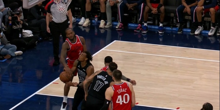 一点都不松懈!克拉克斯顿吃饼试图上篮 小卡精准手刀切球抢断!
