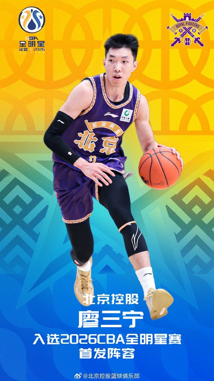 再次恭喜廖三宁入选2026全明星首发阵容 快来收藏这张专属于海报
