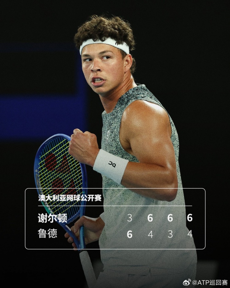澳网男单第四轮:8号种子谢尔顿3-1击败12号种子鲁德,进八强