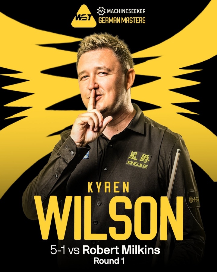斯诺克德国大师赛正赛揭幕战:卫冕冠军威尔逊5-1米尔金斯进32强