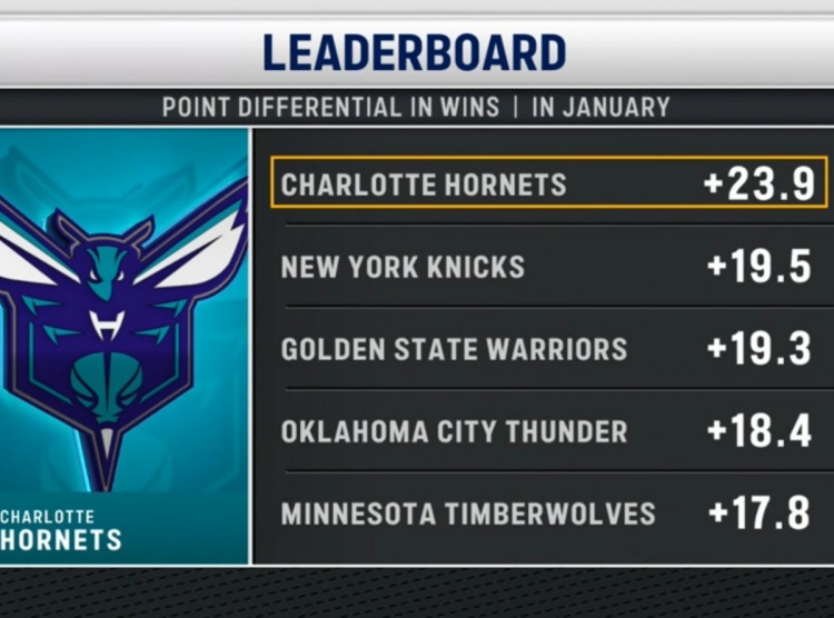 三节领先76人50分!黄蜂本月赢球比赛场均净胜23.9分 联盟第一!