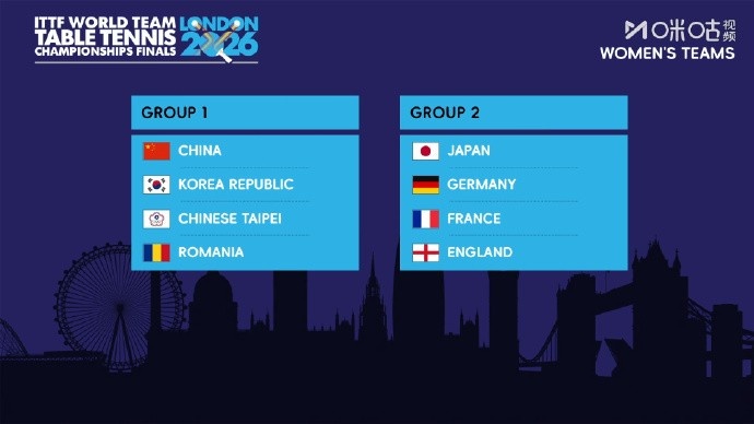 伦敦世乒赛团体赛分组:国乒男团与瑞典、韩国、英格兰同组