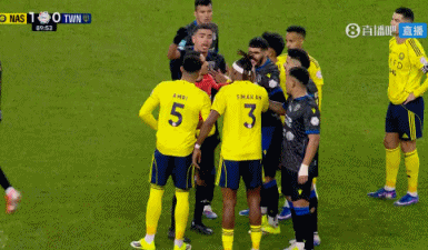 第31分钟,穆法利杰战术犯规拉倒哈纳姆,吃到一张黄牌。↓