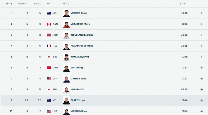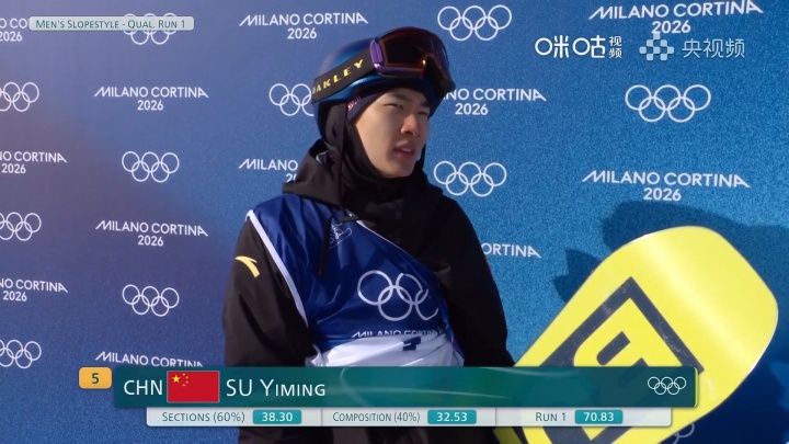 直播吧02月15日讯 米兰冬奥会单板滑雪男子坡面障碍技巧预赛第1轮比赛结束,中国选手苏翊鸣获得70.83分,暂排29位参赛选手中的第6位。稍后将进行第二轮比赛。