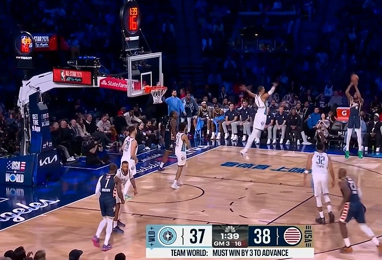 真玩命!文班篮下飞身而起 奋力干扰对手三分投篮