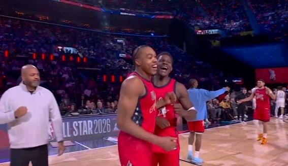 把文班气坏了!巴恩斯弧顶接球迎着文班补防命中绝杀三分球