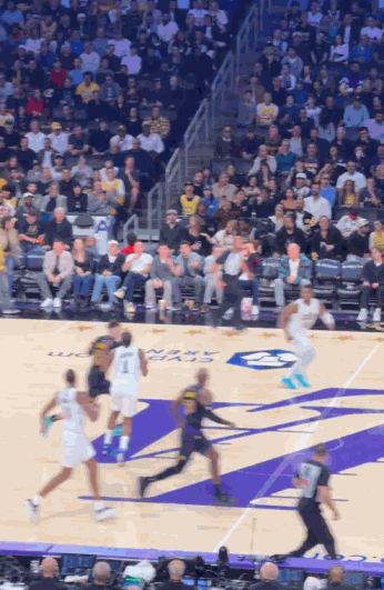君临天下!湖人防守反击 詹姆斯接里夫斯高抛单臂空接轰炸篮筐