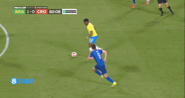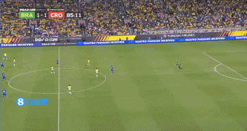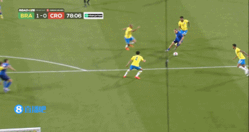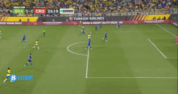 第45+2分钟,克罗地亚角球被解围,巴西后场库尼亚长传反击,维尼修斯跟进禁区左侧1对3盘带突破后扣球横敲,中路达尼洛跟进包抄入网!巴西1-0领先↓
