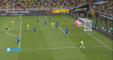第23分钟,巴西弧顶右侧战术定位球开出横传,库尼亚跟进打门被挡出底线↓