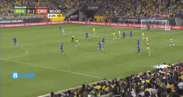 下半场补时6分钟。最终全场比赛结束,巴西3-1克罗地亚。