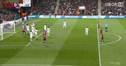上半场伤停补时2分钟,半场结束,伯恩茅斯暂0-0利兹联。
